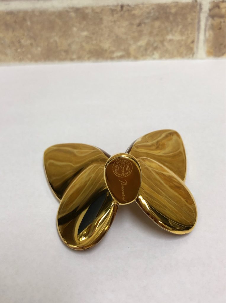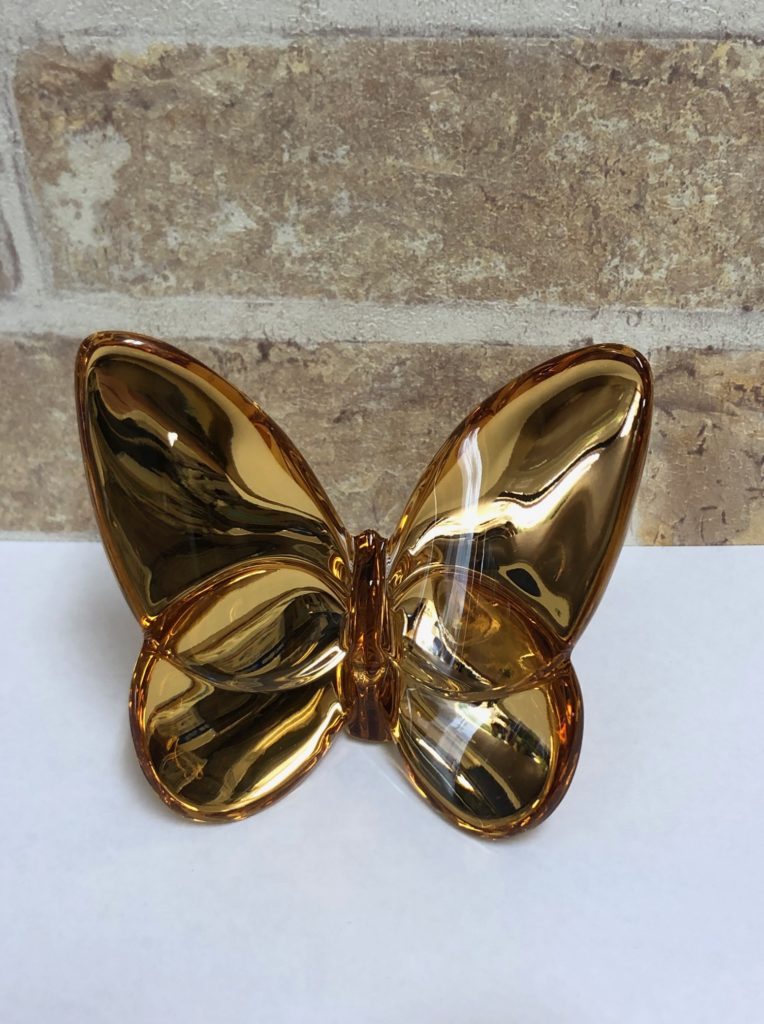 こんにちは、銀座パリス保土ヶ谷駅前店です。早速ですが以前お買取りしたバカラのフィギュリン(置物)です。金色のラッキーバタフライですね。金色のクリスタルフィギュリンで綺麗ですね。金運が上がりそうな気もします。こちらはリピートのお客様から「整理してたら出てきて・・・」ということで査定させていただきました。