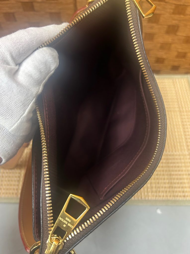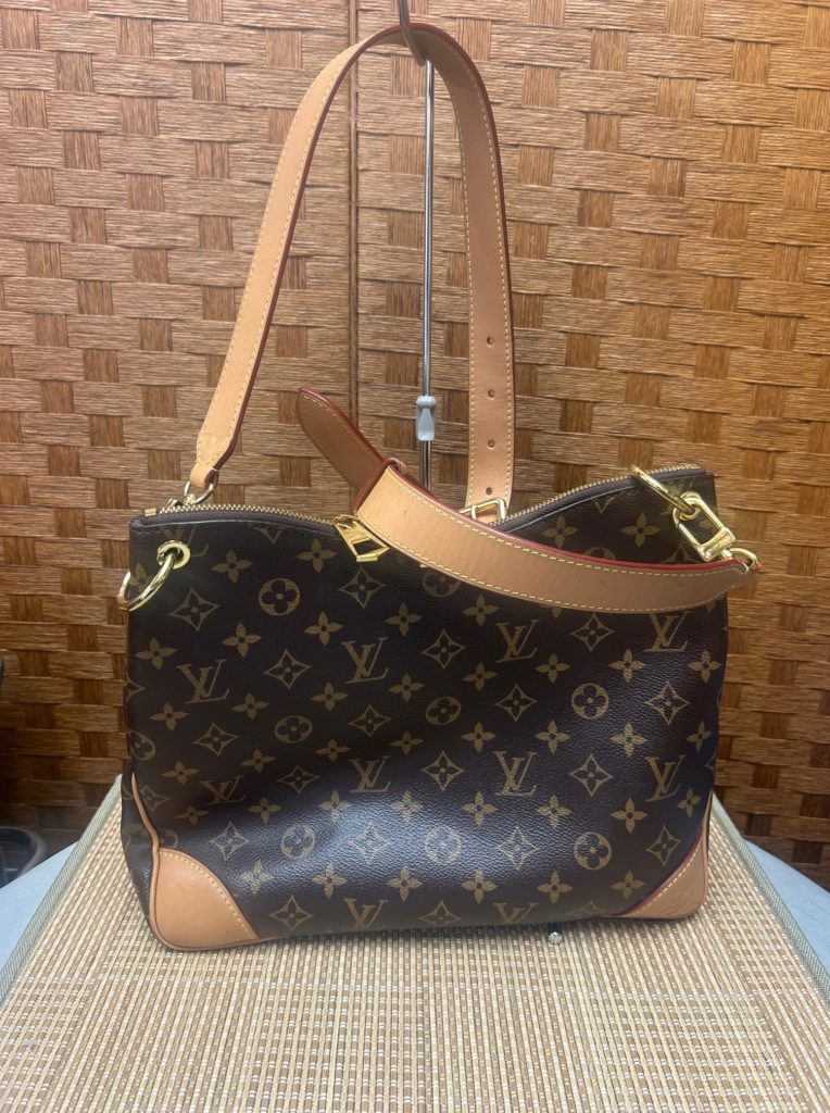 こんにちは、銀座パリス保土ヶ谷駅前店です。早速ですが、先日お買取りしたルイ・ヴィトンのショルダーバッグです。人気のオンデンMMですね。使いやすい大きさで、カジュアルでもフォーマルでも映える素敵なバッグだと思います。こちらのお品物は以前からご愛顧おいただいているりぴーとのお客様から「使わないので・・・」と連絡があり、お買取りさせていただきました。