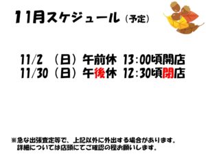 11月店休日のお知らせ