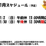 11月店休日予定
