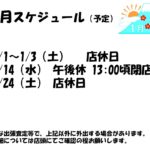 お知らせ2025年12月31日1月店休日のお知らせ