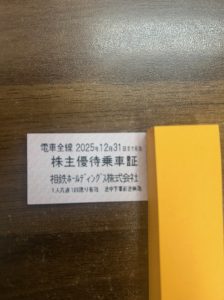 こんにちは。銀座パリス保土ヶ谷駅前店です。今回は先日お買取りしました相模鉄道株主優待券販売中のお知らせです。電車全線でご利用可能です。無くなり次第終了になります。1枚から販売していますのでお気軽にお問い合わせください!