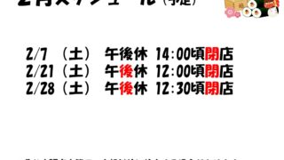 2月28日(土):午後休12:30頃閉店